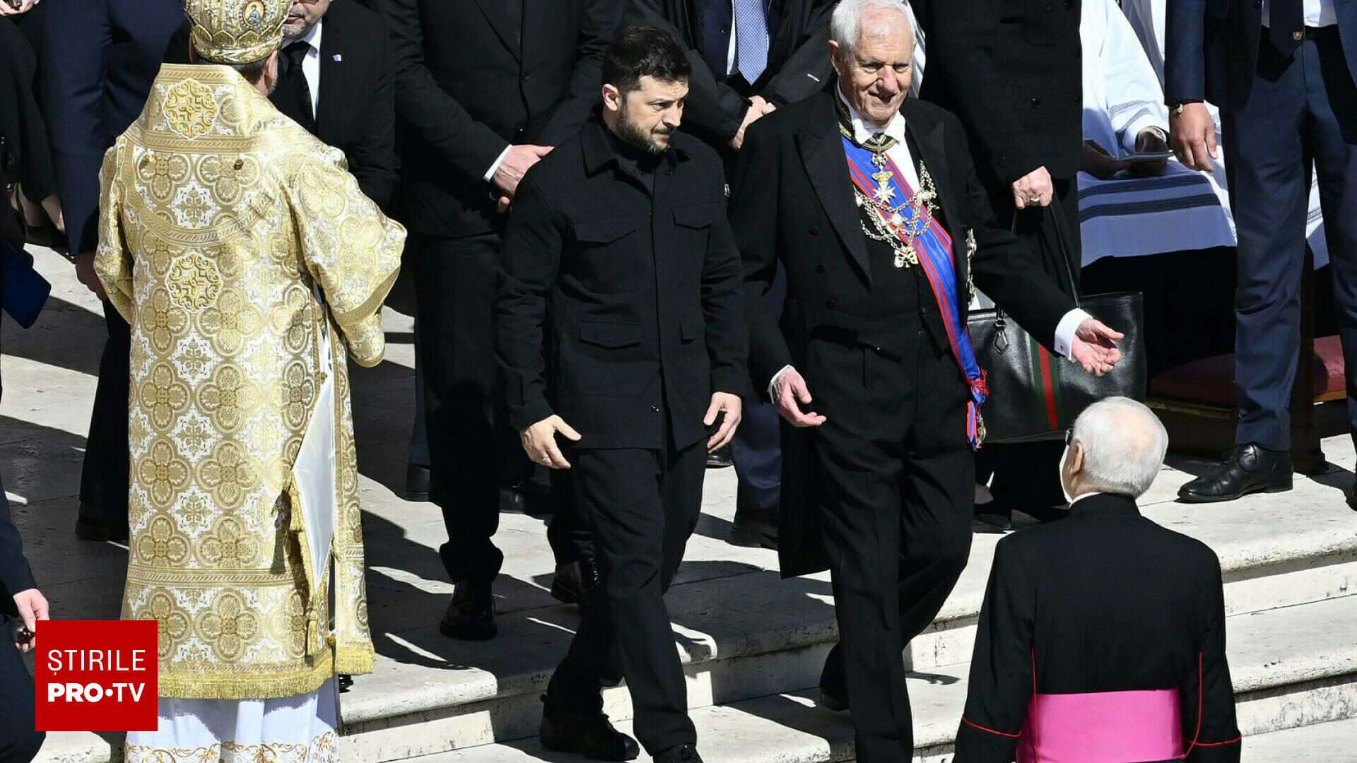 Mulțimea de lideri mondiali prezenți a fost auzită aplaudând în momentul în care președintele ucrainean a părăsit Bazilica Sfântul Petru, unde își adusese omagiul în fața sicriului pontifului, înainte de ceremonia funerară, potrivit The Independent.